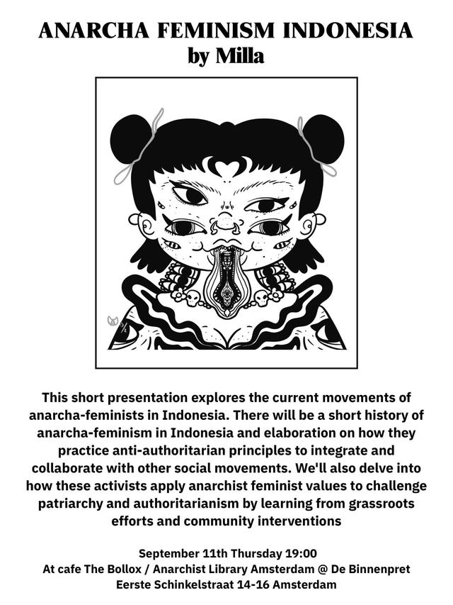 There will be a short history of anarcha-feminism in Indonesia and elaboration on how they practice anti-authoritarian principles to integrate and collaborate with other social movements. We'll also delve into how these activists apply anarchist feminist values to challenge patriarchy and authoritarianism by learning from grassroots efforts and community interventions.