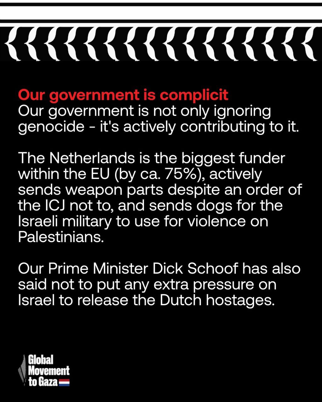Two years after the start of the genocide, we will stop working. We must increase the pressure on the Dutch government in every way possible.